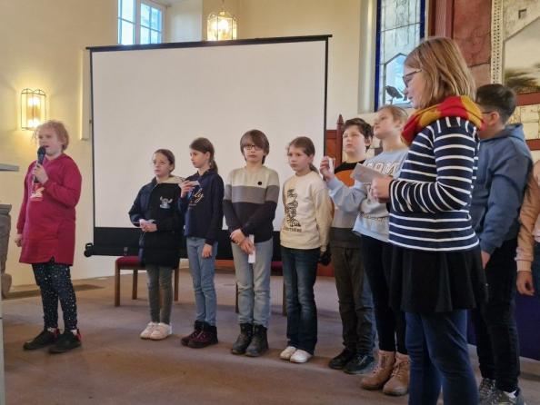 Am Dienstag, den 16.12., feierten wir alle gemeinsam wieder unseren traditionellen ökumenischen Weihnachts-Schulgottesdienst. Gestaltet wurde er wieder von den Viertklässlern und ihren Religionslehrerinnen Frau Börger und Frau Brümmer in Zusammenarbeit mit Frau Bußmann (katholische Kirche) und Frau Bolte-Wittchen (evangelische Kirche). Das Thema waren in diesem Jahr "Engel". Das Lied "Engel haben keine Flügel" verdeutlichte allen noch einmal, das jeder ein Engel für jemand anderen sein kann. Diese Botschaft fand sich auch an dem Engelsflügel, den jedes Kind am Ausgang bekam. Auch alle Lehrkräfte, Klassenassistenzen und Schulbegleiter wurden mit einem Engel bedacht, der daran erinnern soll, dass auch sie im Alltag oft ein Engel für andere sind.